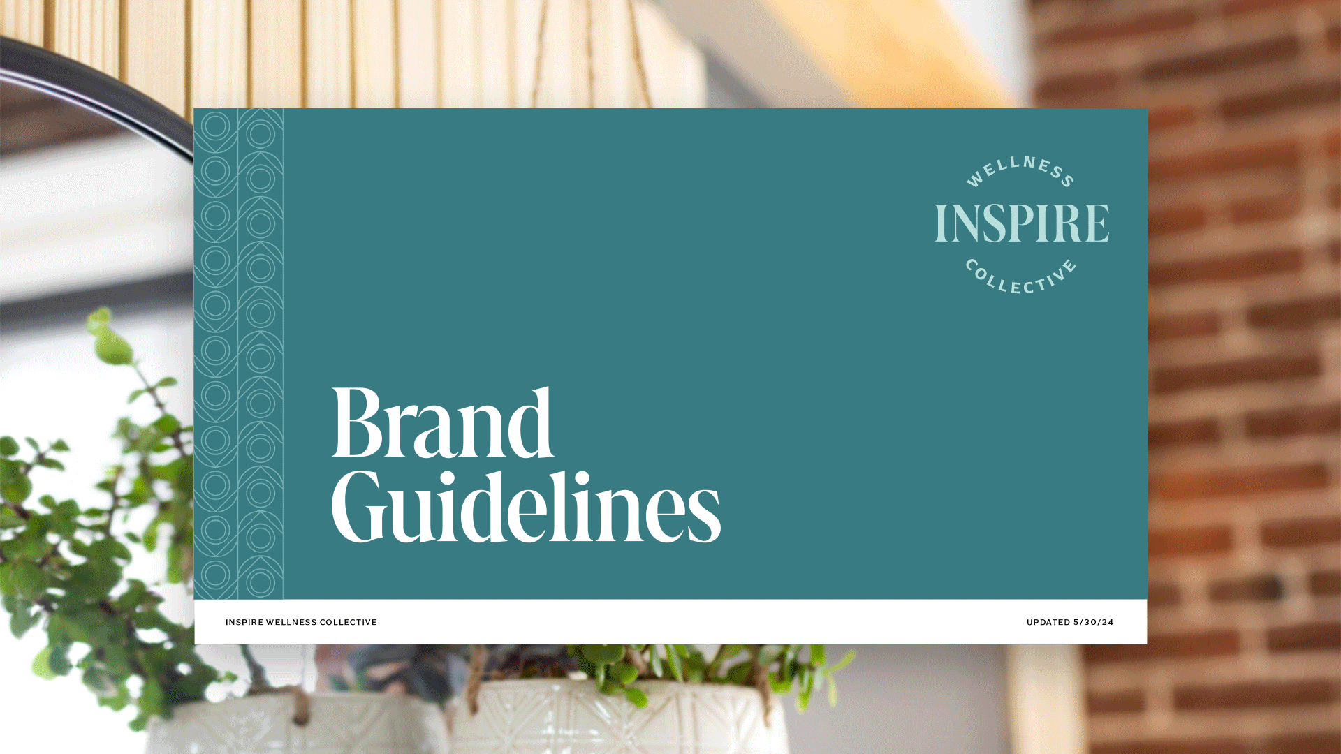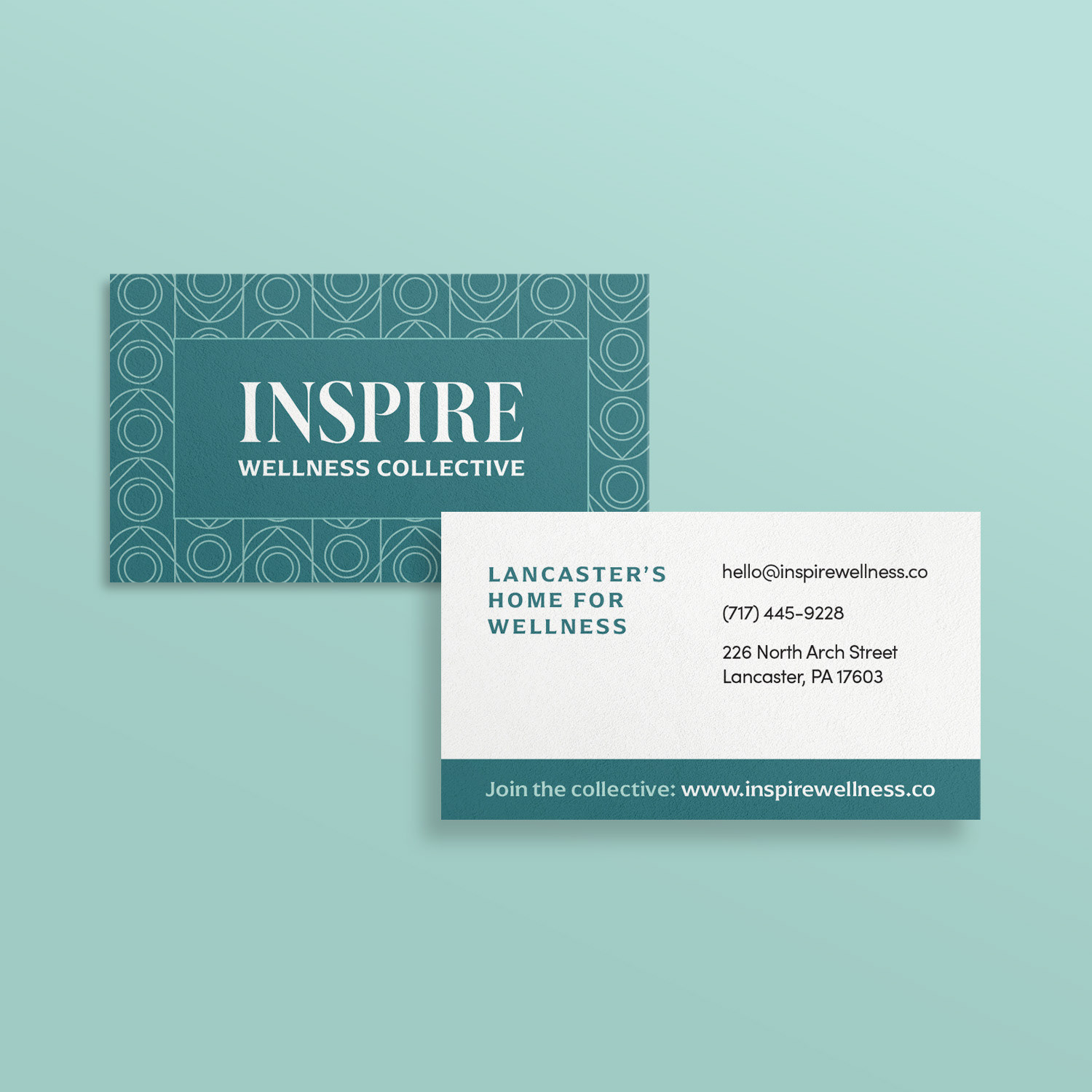 The new Inspire brand feels calm, spa-like, yet approachable and well-rounded. The palette runs from cool to warm, reflecting the whole spectrum of services offered by Inspire members: for mind, body, and spirit. Visuals can range from refined to playful while interacting with either structured or organic custom patterns.