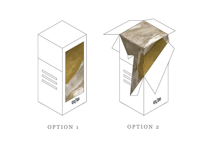 In the middle of the semester, all students were sent home due to the COVID-19 pandemic. Without access to printing studios or equipment, and with most businesses in lockdown, I had to do a lot of last-minute problem-solving. The final packages are a layered result of hand-stamping, hand-die-cutting, and embossing, most of which involved custom-made or improvised tools. This process gave the printing on each package a unique, handmade quality, in addition to a faux aged effect.